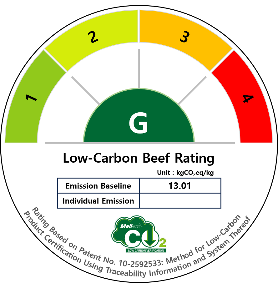 Based on the 'FAO beef carbon emissions and footprints by country' and national low-carbon animal product certification standards, we confirm that this data has been analyzed and verified through a low-carbon beef verification platform using genomic information and cattle slaughter history technology, owned by Melliens.